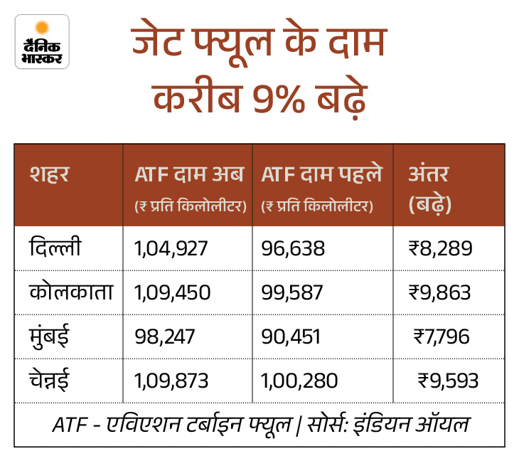 डेटा के मुताबिक, घरेलू ATF की कीमतों में बढ़ोतरी को ₹15 प्रति लीटर पर सीमित रखा गया, जबकि इंटरनेशनल ATF के दाम ₹73 प्रति लीटर तक बढ़ गए।