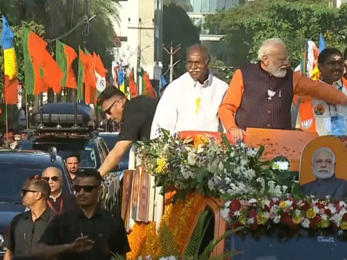 पीएम मोदी ने पुडुचेरी में रोड शो किया