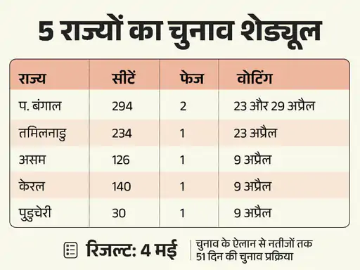 देश के 5 राज्यों में चुनाव, 4 मई को एकसाथ रिजल्ट