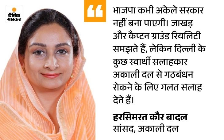 कैप्टन के बयान पर अकाली सांसद हरसिमरत कौर बादल ने कहा कि भाजपा कभी अकेले सरकार नहीं बन पाएगी। इनके पूर्व प्रधान जाखड़ साहब हों या कैप्टन अमरिंदर सिंह, ये सब ग्राउंड रियलिटी जानते हैं। लेकिन यहां दिल्ली में बैठे बीजेपी को जो एडवाइज करने वाले लोग हैं, जो अपने निजी स्वार्थ के लिए इनके कंधों पर बैठे हुए हैं, उनकी दुकानें बंद हो जाएंगी अगर अकाली दल के साथ गठबंधन होता है। इसलिए वे इनके कान में फूंक भरते रहते हैं। उन्हें ग्राउंड रियलिटी का पता नहीं है।