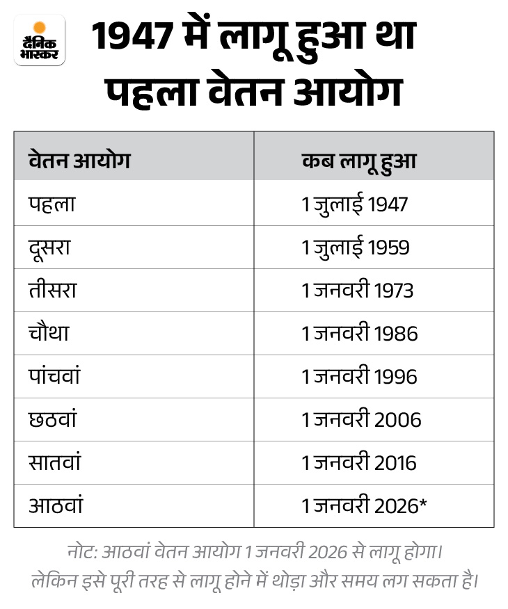 पिछले वेतन आयोग कब बने, कब लागू हुए?