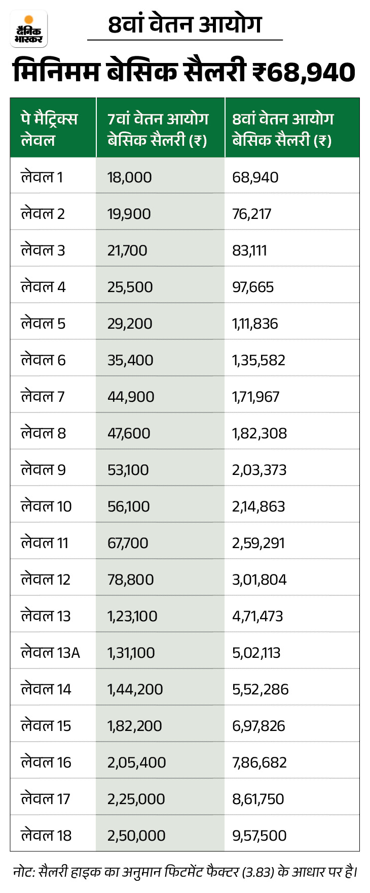 8वें वेतन आयोग में अगर फिटमेंट 3.83 लागू होता है, तो नई सैलरी होगी: