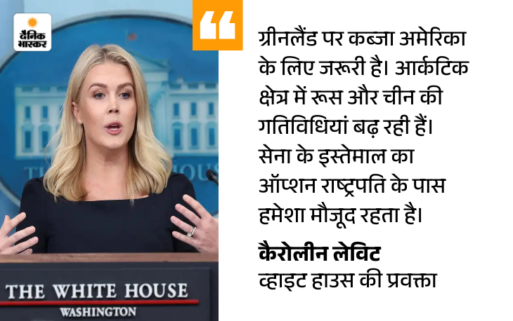 व्हाइट हाउस की प्रवक्ता कैरोलीन लेविट ने मंगलवार को कहा कि उनकी टीम ग्रीनलैंड पर कंट्रोल करने के कई तरीके तलाश रही है, जिनमें सैन्य बल का इस्तेमाल भी शामिल है।
