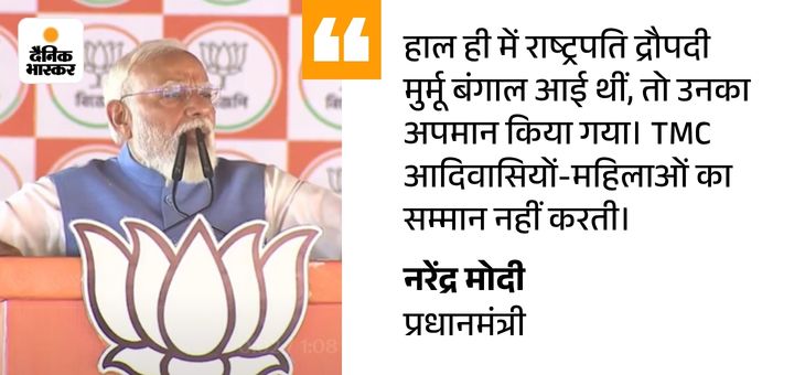 - PM ने कहा- TMC मुझे गालियां देती है। झूठे आरोप लगाती है, लेकिन यह नहीं बताती कि पिछले 15 साल में बंगाल के लिए क्या किया। उसके पास न नीयत है और न ही नीति।