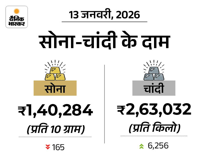 1. चांदी दो दिन में ₹20,000 बढ़कर ₹2.63 लाख/kg हुई: सोना ₹1.40 लाख प्रति 10 ग्राम बिक रहा; दोनों लगातार दूसरे दिन ऑलटाइम हाई पर