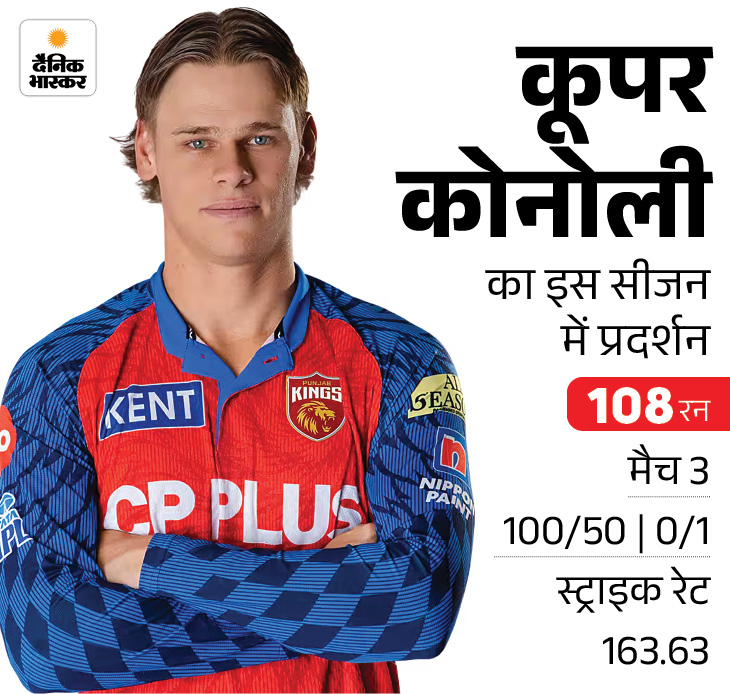 कोनोली पंजाब किंग्स के टॉप स्कोरर कूपर कोनोली फिलहाल पंजाब किंग्स के टॉप स्कोरर हैं। उन्होंने 3 मैचों में 108 रन बनाए हैं, जिसमें एक अर्धशतक शामिल है। अपने IPL डेब्यू मैच में गुजरात टाइटंस के खिलाफ कोनोली ने 44 गेंदों में नाबाद 72 रन की पारी खेली थी। उन्हें प्लेयर ऑफ द मैच चुना गया था।