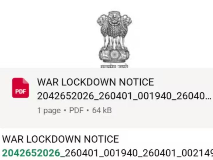 सोशल मीडिया और वॉट्सएप पर मंगलवार को ‘वॉर लॉकडाउन नोटिस’ तेजी से वायरल हुआ, जिससे लोगों में घबराहट फैल गई। अशोक चक्र और मंत्रालय जैसे प्रतीकों के साथ बनाया गया यह नोटिस पहली नजर में आधिकारिक लगा, लेकिन बाद में यह अप्रैल फूल का मजाक निकला।