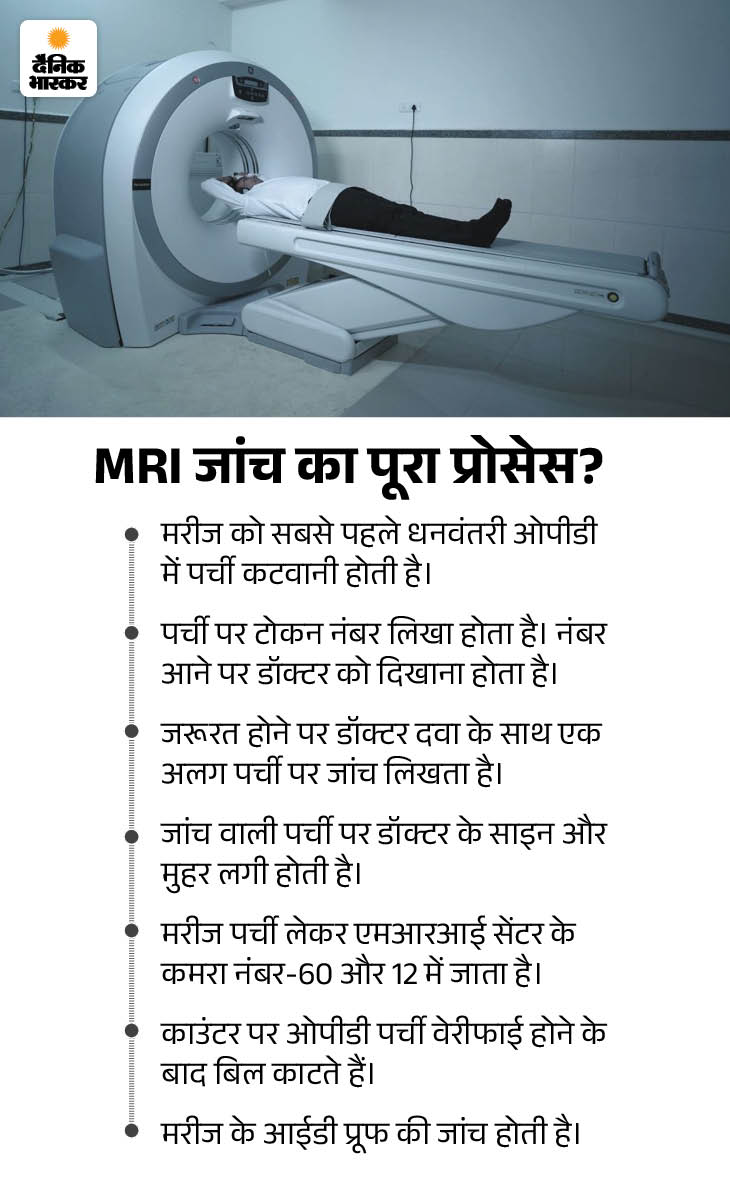 एमआरआई में अलग-अलग तरह की जांच 3-4 हजार से शुरू होकर 30 हजार रुपए तक में होती है। दलाल इन जांचों को जल्दी करवाने के नाम पर 3 से 8 हजार रुपए वसूलते हैं।