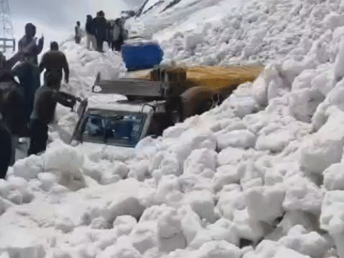 एवलांच होने से कई वाहन फंस गए और जाम लग गया।