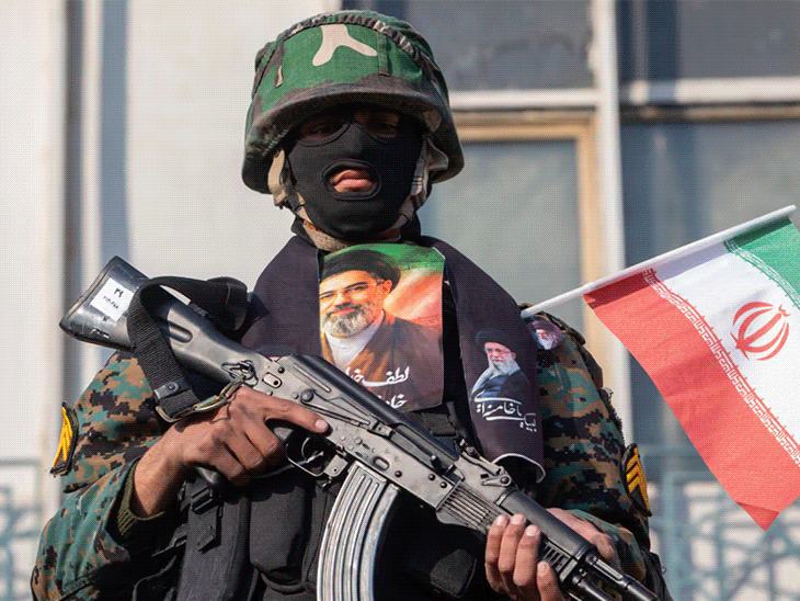 ईरानी सैनिक नए सुप्रीम लीडर मुजतबा खामेनेई की तस्वीर के साथ