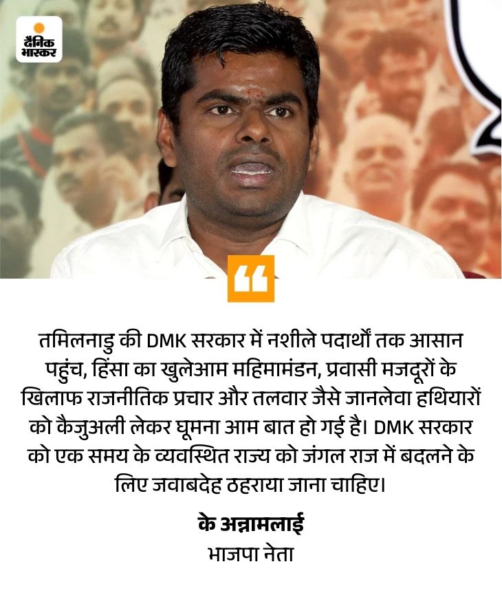 उन्होंने लिखा कि यह घटना DMK-शासित तमिलनाडु की परेशान करने वाली सच्चाई है। हालांकि पुलिस ने अपराधियों को गिरफ्तार कर लिया है, लेकिन बड़ी समस्या अभी भी बनी हुई है।