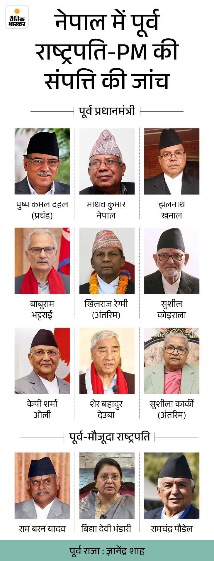 इसमें पूर्व राजा ज्ञानेंद्र शाह भी आएंगे। इसके अलावा तीन राष्ट्रपति राम बरन यादव, विद्या देवी भंडारी और मौजूदा राष्ट्रपति रामचंद्र पौडेल भी जांच के घेरे में होंगे। यह जांच सिर्फ बड़े नेताओं तक सीमित नहीं है, बल्कि इसमें मंत्री, संवैधानिक पदों पर बैठे 100 से ज्यादा लोग और वरिष्ठ नौकरशाह भी शामिल होंगे।
