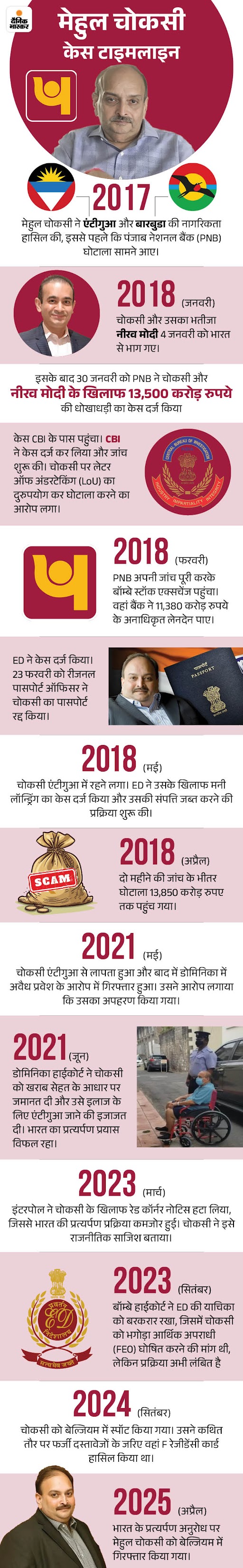 1. PNB घोटाले का आरोपी मेहुल चोकसी बेल्जियम में गिरफ्तार: भारत की प्रत्यर्पण अपील के बाद एक्शन; सेहत का हवाला देकर बेल मांग सकता है चोकसी