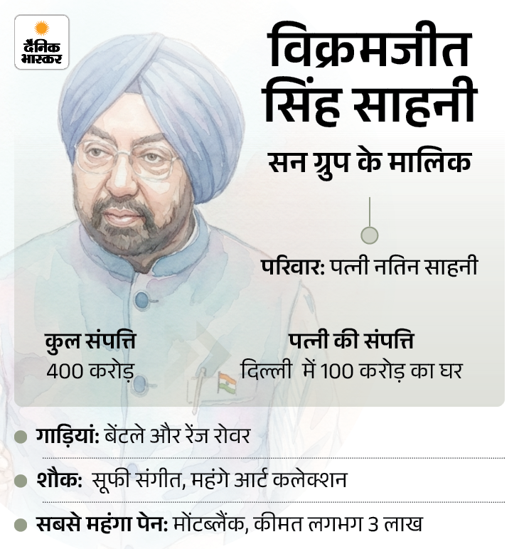 विक्रमजीत सिंह साहनी इंडस्ट्रियलिस्ट के साथ सूफी संगीत के बड़े शौकीन हैं। पत्नी नतिन साहनी के पास दिल्ली में 100 करोड़ का घर है।