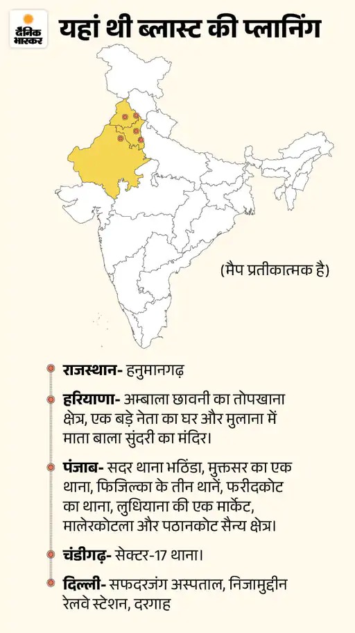 ये आरोपी भी शहजाद भट्टी के कहने पर राजस्थान, हरियाणा, पंजाब और दिल्ली में धमाकों की प्लानिंग कर रहे थे। सबसे पहला धमाका राजस्थान के हनुमानगढ़ में करने की प्लानिंग थी।