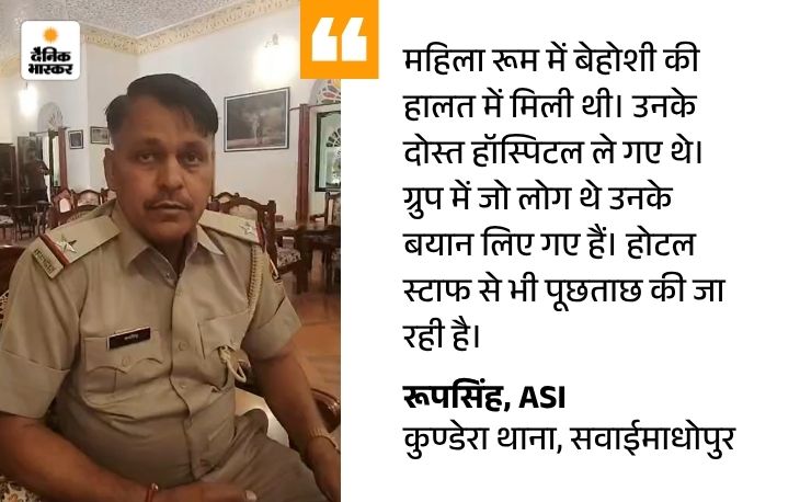 कुण्डेरा थाने के एएसआई रूप सिंह ने बताया कि आयरलैंड की मरियम फ्रांसीसी (40) दोस्तों के साथ 25 मार्च को रणथंभौर आई थी। उनका ग्रुप हेरिटेज हवेली होटल में रुका था।