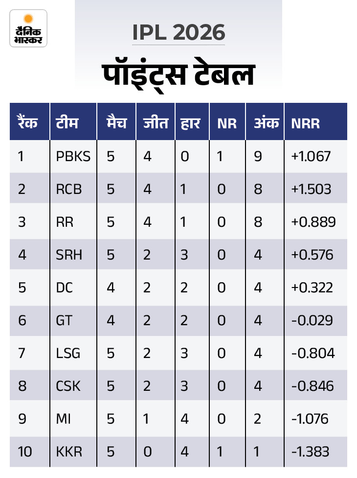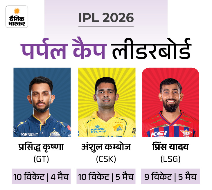 PBKS के लिए IPL 2026 में अब तक श्रेयस अय्यर बल्लेबाजी में सबसे भरोसेमंद खिलाड़ी साबित हुए हैं। उन्होंने 4 मैचों में 137 रन बनाए हैं, जिसमें 2 अर्धशतक शामिल हैं और उनका स्ट्राइक रेट 187.67 रहा है। दूसरी ओर, गेंदबाजी में विजयकुमार वैशाक ने 4 मुकाबलों में 5 विकेट लिए हैं।