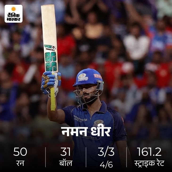 14वें ओवर में शशांक सिंह ने नमन धीर (50 रन) को जेवियर बार्टलेट के हाथों कैच कराया। उन्होंने शतकीय साझेदारी तोड़ी।
