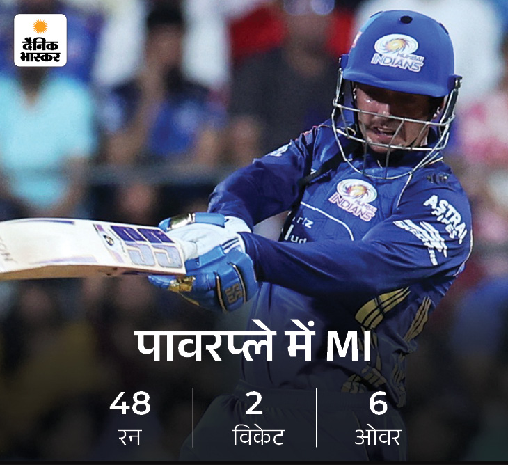 टॉस हारकर बैटिंग कर रही मुंबई की शुरुआत खराब रही। टीम ने पावरप्ले में 48 रन बनाने में 2 विकेट गंवा दिए। रायन रिकेल्टन 2 और सूर्यकुमार यादव जीरो पर आउट हुए।
