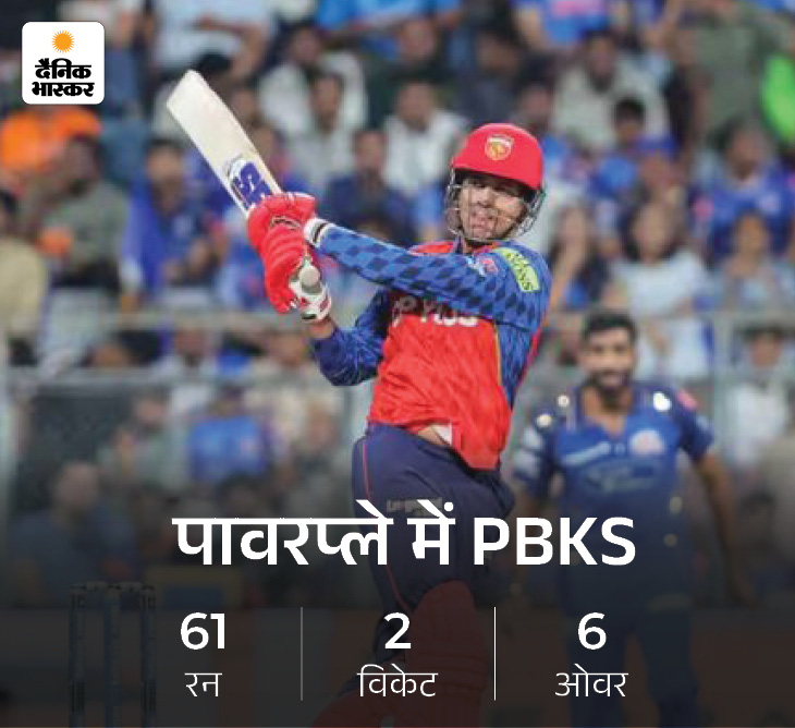 196 रन का टारगेट चेज कर रही पंजाब की शुरुआत मुंबई से बेहतर रही है। टीम ने पावरप्ले में दो विकेट पर 61 रन बनाए। वहीं, मुंबई ने 48 रन बनाने में दो विकेट गंवा दिए थे।