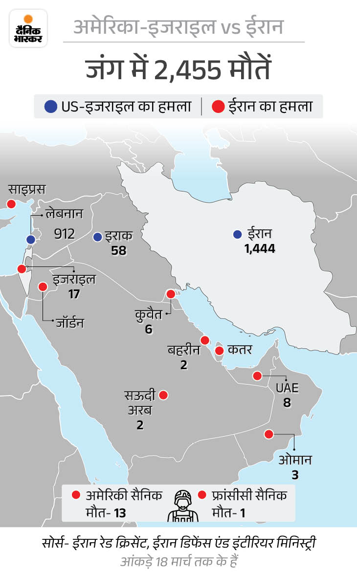इसके जवाब में ईरान ने मीडिल ईस्ट के कई देशों पर तेज और लगातार हमले किए। उसने पूरे क्षेत्र में अमेरिका के सहयोगियों पर सैकड़ों मिसाइल और ड्रोन दागे। इन हमलों, खासकर होर्मुज स्ट्रेट में जहाजों पर हमलों के कारण खाड़ी देशों से ईरान के रिश्ते और खराब हो गए और ग्लोबल एनर्जी मार्केट पर भी असर पड़ा।
