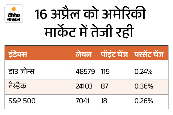 16 अप्रैल को सेंसेक्स 123 अंक (0.16%) गिरकर 77,989 के स्तर पर बंद हुआ। निफ्टी भी 35 अंक (0.14%) बढ़कर 24,197 पर आ गया।