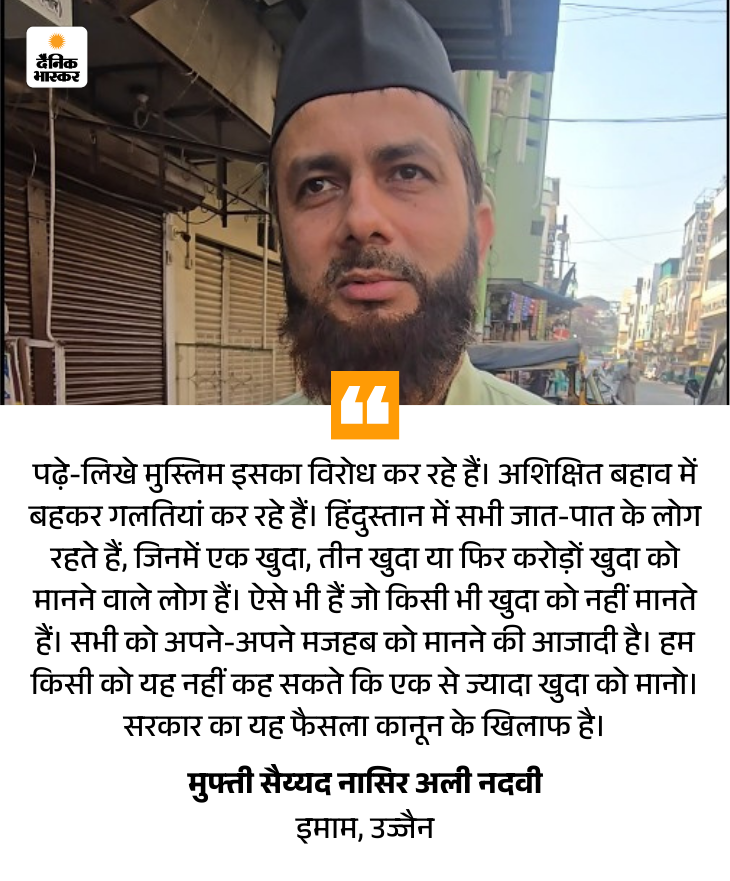 उज्जैन के इमाम मुफ्ती सैय्यद नासिर अली नदवी ने वंदे मातरम् की नई गाइडलाइन का विरोध जताया है। - Dainik Bhaskar