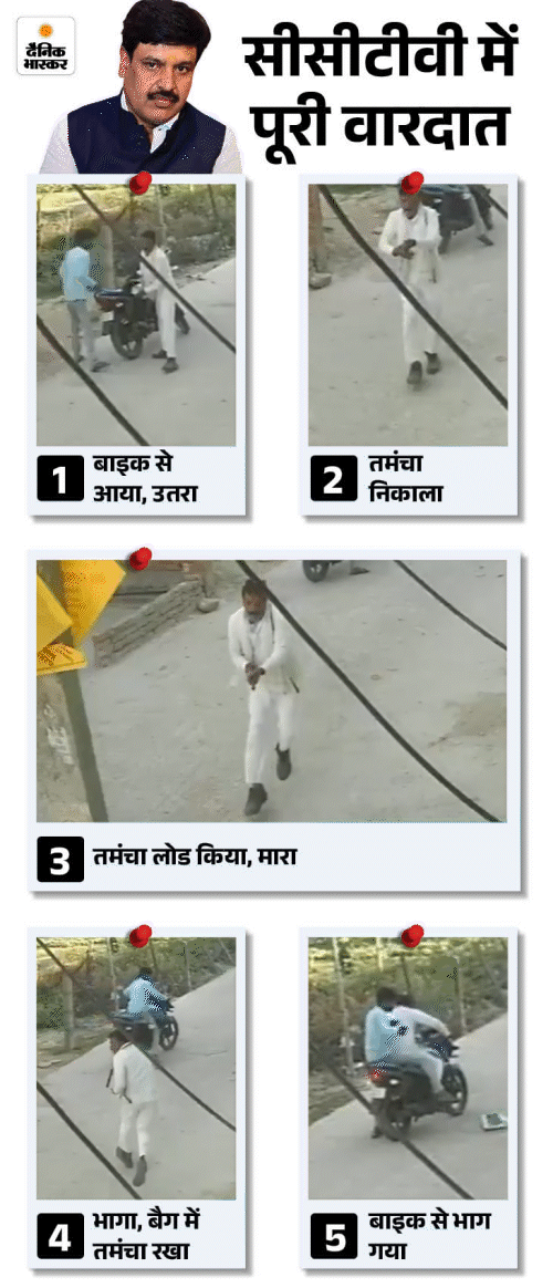 - बाइक चला रहे साथी आरोपी ने 15-16 बार किक मारी, लेकिन कुछ नहीं हुआ। हमलावर ने उसे पीछे किया और खुद बाइक स्टार्ट करने लगा। लोग हमलावरों को पकड़ने दौड़े तो उन्हें तमंचा दिखाकर धमकाया। हमलावर ने किक मारकर बाइक स्टार्ट की। फिर मौके से दोनों फरार हो गए।