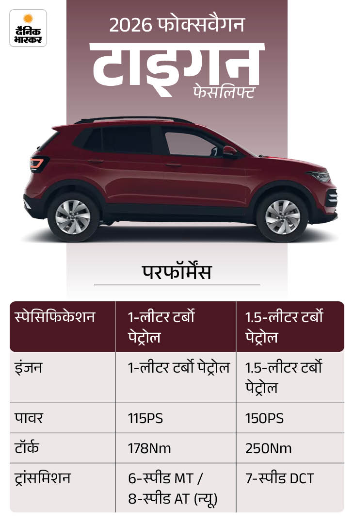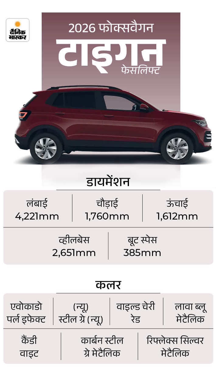 जर्मन ऑटोमेकर फॉक्सवैगन ने अपनी पॉपुलर मिड-साइज SUV टाइगुन का फेसलिफ्ट मॉडल भारत में लॉन्च कर दिया है। 2026 टाइगुन फेसलिफ्ट में कंपनी ने कॉस्मेटिक बदलावों के साथ-साथ मैकेनिकल अपडेट्स भी किए हैं।