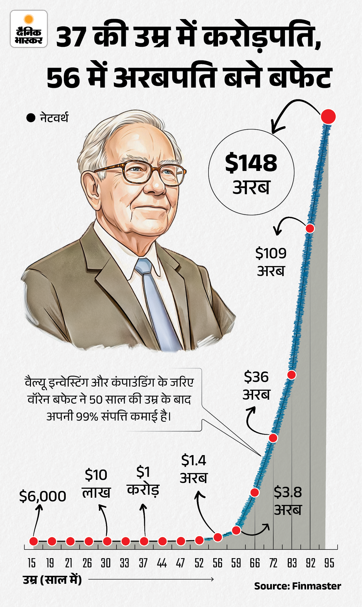 11 साल की उम्र से इन्वेस्टमेंट करने वाले वॉरेन बफेट ने अपनी 99% संपत्ति 50 साल की उम्र के बाद कमाई है, खासकर 60-70 की उम्र के बाद। दरअसल, वॉरेन ने पैसा कमाने के लिए दो तरकीब अपनाई…