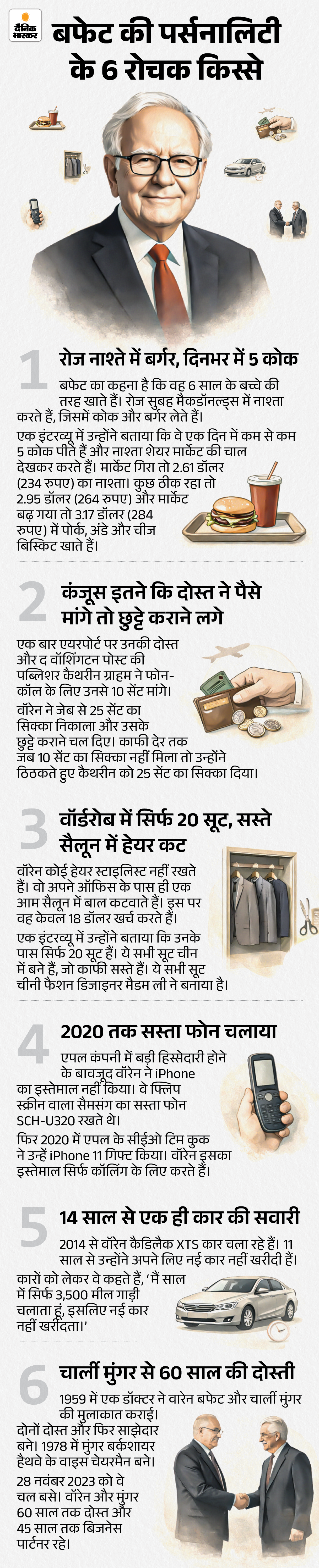 इस दौरान अमेरिका ने 11 राष्ट्रपति देखे, दुनिया की सबसे बड़ी कंपनियां डूबी-उभरीं, बाजारों ने कई बार सांस रोकी, लेकिन बफेट नहीं बदले। न उनका तरीका, न उनकी फिलॉसफी। उनकी बर्कशायर हैथवे 34 लाख करोड़ कैश के साथ आज दुनिया की सबसे बड़ी इन्वेस्टमेंट कंपनी है और बफेट दुनिया के 10वें सबसे अमीर शख्स।
