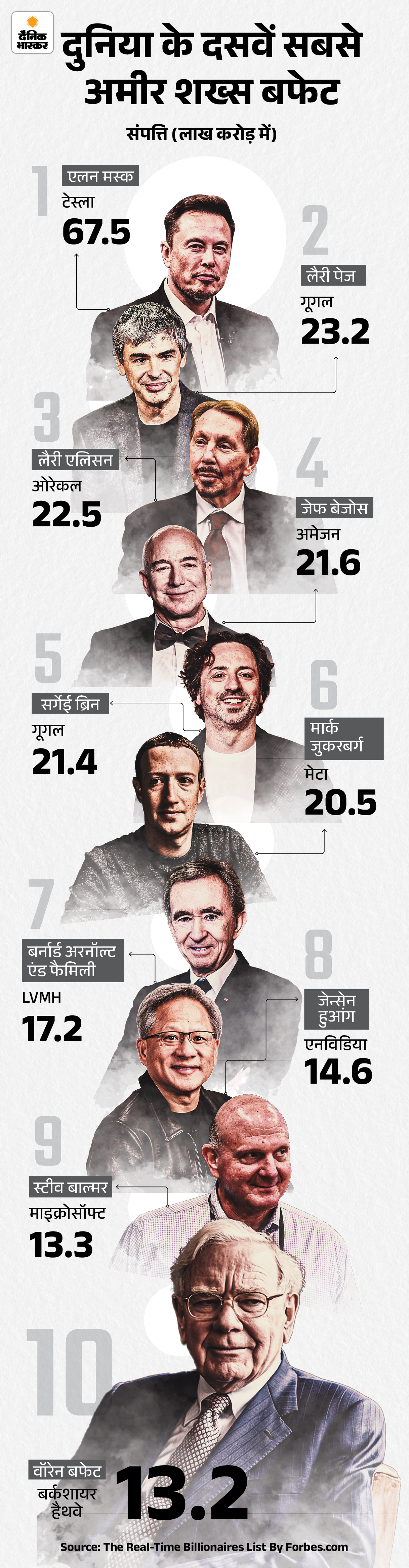 उन्होंने कहा, ‘बर्कशायर हैथवे के अपने सभी शेयर धीरे-धीरे परोपकारी संस्थाओं को दान कर दूंगा। मेरी संपत्ति का 99% से ज्यादा हिस्सा मेरे रहते या न रहते दान कर दिया जाएगा। पैसों के हिसाब से ये नंबर तो बहुत बड़ा दिख रहा होगा, लेकिन लोग हर रोज इससे कहीं ज्यादा दान कर देते हैं।